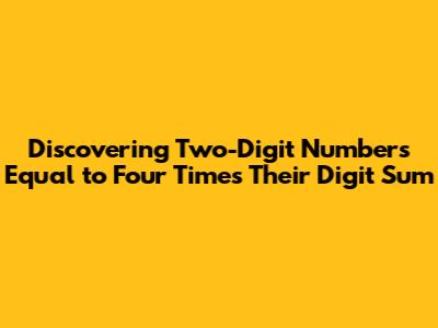 Hey guys! Let's dive into a fun mathematical puzzle. We're going to explore the fascinating world of two-digit numbers and figure out which ones are equal to four times the sum of their digits. You know, like how 12 is four times its digit sum because 1 + 2 = 3, and 3 multiplied by 4 is indeed 12. Let's roll up our sleeves and find out what other numbers fit this cool pattern!