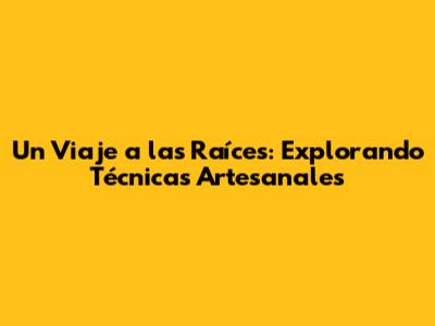Un Viaje A Las Raíces: Explorando Técnicas Artesanales