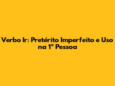 Verbo Ir: Pretérito Imperfeito E Uso Na 1ª Pessoa